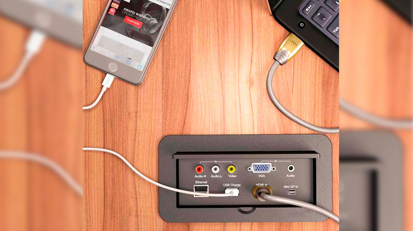 Estas cajas de conectividad para las mesas de juntas también cuentan con diferentes diseños que nos permiten que no se pierda la elegancia y la ergonomía de nuestros espacios; la caja de conectividad para mesa, también conocido como grommet, es un elemento muy práctico a la hora de realizar cualquier actividad dentro de una reunión.