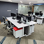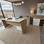 Suministro e instalacion de puesto gerencial de medidas 1.50m X 1,50m que constan de 1 superficie principal de 1,50×0,70 m y una superficie lateral de 1,50×0,60 m, elaboradas en tablex de 25mm enchapado en formica, filos rematados con canto rigido, estructura en aglomerado enchapado con niveladores enrroscables, cajonera tipo challenger con rodachines, metalica o en madecor de 15mm con correderas full station, trampa de 3 cajones, manijas y chapa de seguridad. Color y diseño a elegir.
